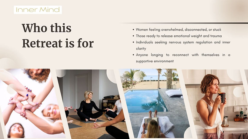45 days before the retreat (by January 6, 2026): 50% refund of the total retreat cost (minus deposit), or option to apply this amount as a credit toward a future Inner Mind retreat within 12 months.